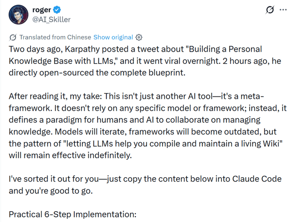Karpathy知识库「LLM Wiki」火爆了,全网围观讨论