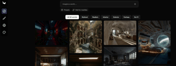 用户可以通过盒子、平面等基础 3D 形状,或直接导入现成的 3D 资产,搭出世界的粗略结构。