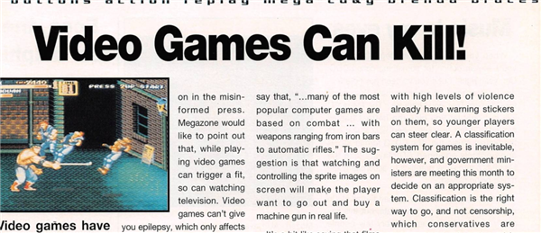 比如由美泰出资发布,没错,还是那家玩具商,的澳大利亚游戏杂志《 超级地带 》,就在 1993 年十月的专栏里写道“ 游戏能够杀死你 ”,剑指任天堂导致的光敏性癫痫事件。
