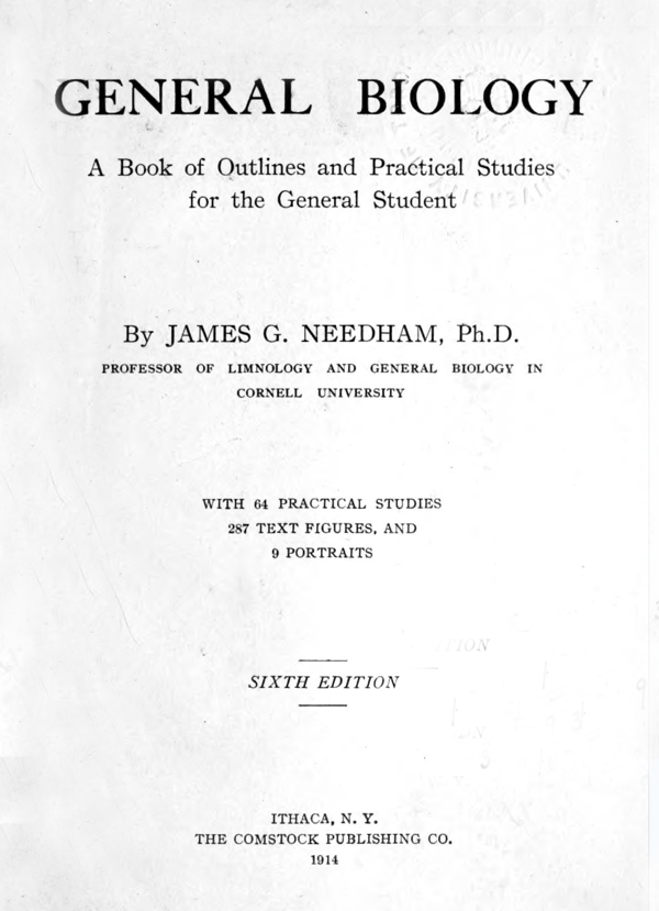 在金陵大学的第一学年,陈桢与他的同学们修读了由康奈尔大学昆虫学教授尼登 (J.G. Needham , 1868—1957) 博士编著的《普通生物学》( General Biology )。