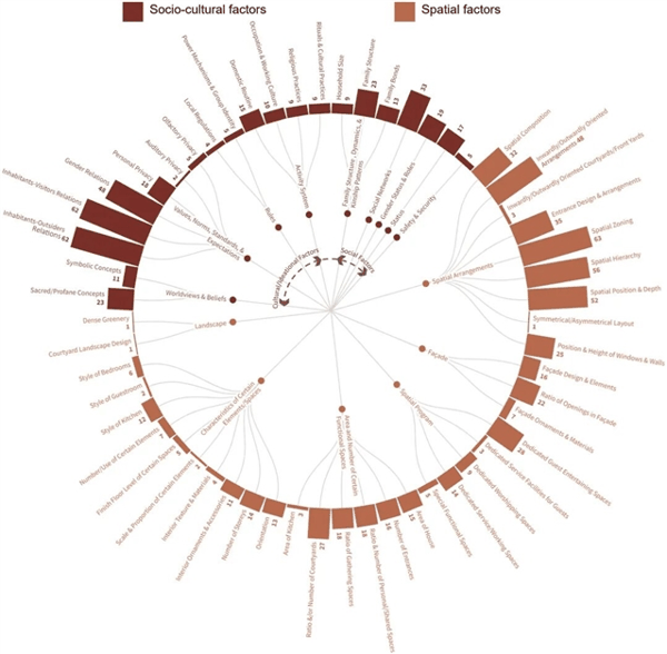 ▲ 图三:文化—住宅研究中社会文化与空间因素的概念模型及其出现频率。©本文作者