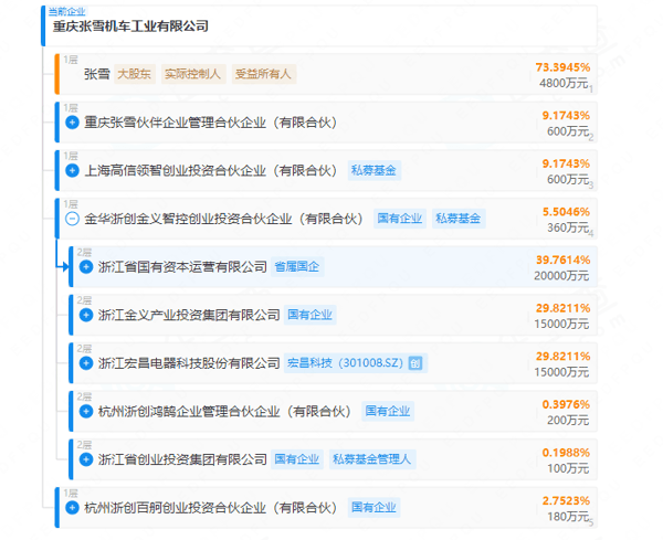 企查查显示,张雪机车注册资本为6540万元,张雪持股73.39%。