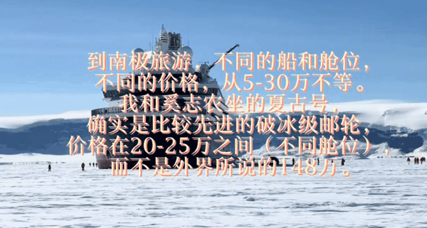 对此,俞敏洪通过一段视频表示,到南极旅游,不同的船和舱位,不同的价格,从5万到30万不等。 “我和奚志农坐的夏古号,确实是比较先进的破冰级邮轮,价格在20-25万元之间(不同舱位),而不是外界所说的148万。”奚志农是知名野生动物摄影师。