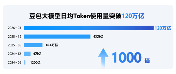 今天,火山引擎公布了一个数据,豆包大模型日均 Token 使用量突破 120 万亿。