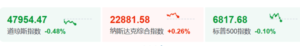 4月10日晚间,美股三大指数震荡,涨跌不一,道指跌超200点,纳指小幅上涨,标普500指数由涨转跌。