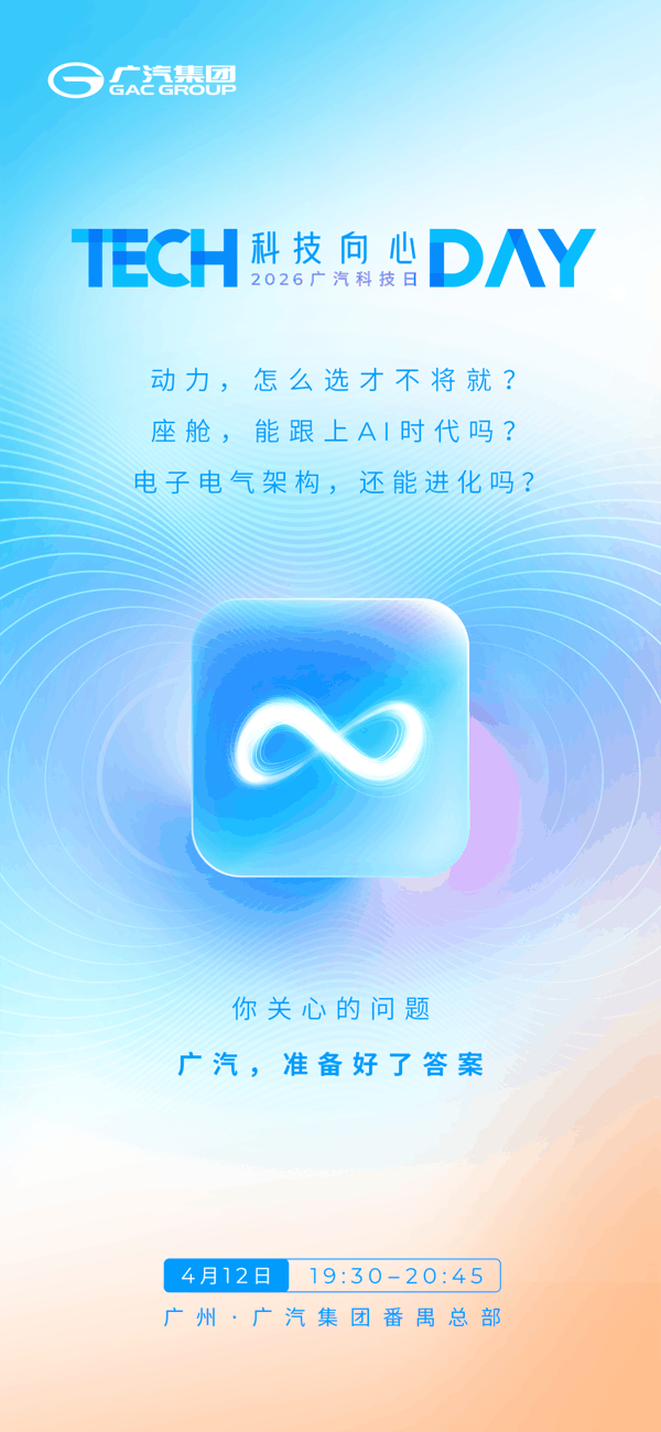 IT之家 4 月 7 日消息,广汽集团今日官宣,以“科技向心”为主题的 2026 广汽科技日将于 4 月 12 日 在广汽集团番禺总部举行,将发布新一代全域混动技术体系、端云一体智能座舱系统、电子电气架构等创新成果。