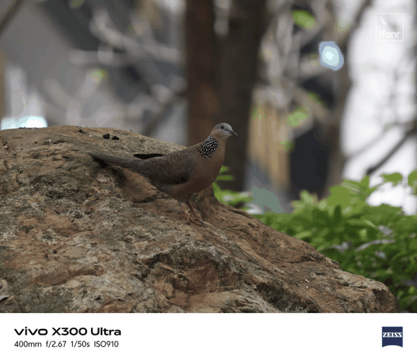 而如果你将它带去打鸟,面对真实的生态场景它也稍显局促,若是在复杂环境中,将焦段裁切到 800mm 的话,很容易失焦——无论是对手机,还是对摄影师的手,都提出了更高的要求。