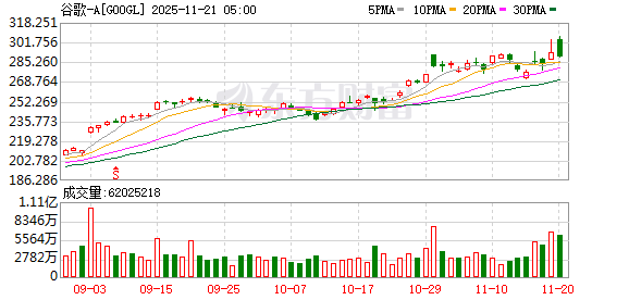 11月20日,受到大盘普跌的影响,谷歌(Nasdaq:GOOGL)跌1.03%收于每股289.98美元,总市值3.49万亿美元。今年以来,谷歌股价已涨超50%。