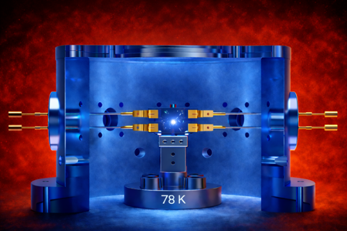 其中,黑体辐射频移与环境温度的四次方成正比,室温(约300K)情况下,钙离子的黑体辐射频移对温度较为敏感,长期以来是制约钙离子光钟性能的主要瓶颈。为解决这一问题,研究团队创新性地发展了液氮低温技术路线。与室温环境相比,将离子运行环境降低至液氮温区(约80K),理论上可使黑体辐射强度降低约200倍,可从本质上大幅降低黑体辐射频移。在前期成功实现3E-18不确定度的基础上,团队通过全方位的技术革新,在第二代系统中实现了性能的跨越式提升。