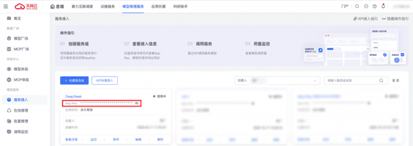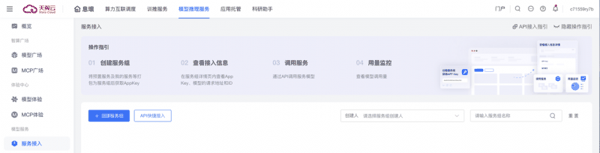 API调用方面,用户首先登录模型推理服务平台,进入“服务接入”,点击“+创建服务组”,填写服务组名称、服务组描述、生效时间、配置服务等信息。