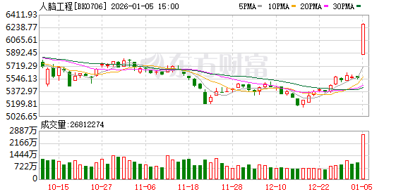 或受此消息影响,2026年A股首个交易日脑机接口概念股掀涨停潮。截至财联社记者发稿,万得脑机接口主题指数(866495)涨幅达9.79%,个股方面 乐普医疗 (300003.SZ)、 三博脑科 (301293.SZ)、 冠昊生物 (300238.SZ)、 迈普医学 (301033.SZ)等20cm涨停。