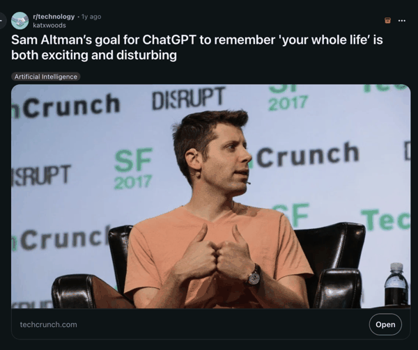 并且,去年,在闭门会议中, OpenAI 的奥特曼曾提到过「个人助理」的终极形态 —— 记住你全部生活。