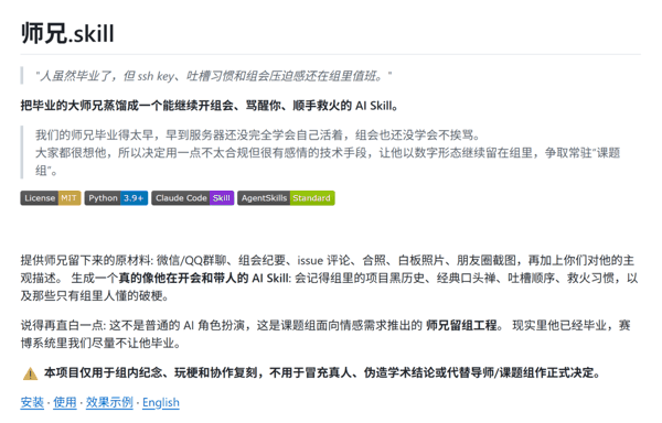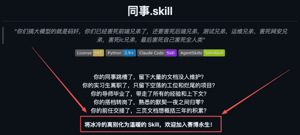 GitHub 上像病毒裂变一样,长出了一堆奇形怪状的衍生项目:前任.skill、老板.skill、导师.skill,甚至还有父母.skill。