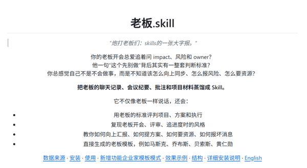 那就把老板判断项目的脑回路、批评方式和向上管理规则沉淀下来吧,ta 的聊天记录、会议纪要、批注和项目材料,都可以蒸馏成一个 skill。