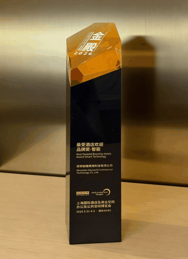 创维商用携智慧酒店全场景解决方案精彩亮相,不仅收获行业各界高度关注与认可,更斩获2026上海酒店展金殿奖「最受酒店欢迎智能品牌奖」,载誉收官,实力彰显行业标杆地位。