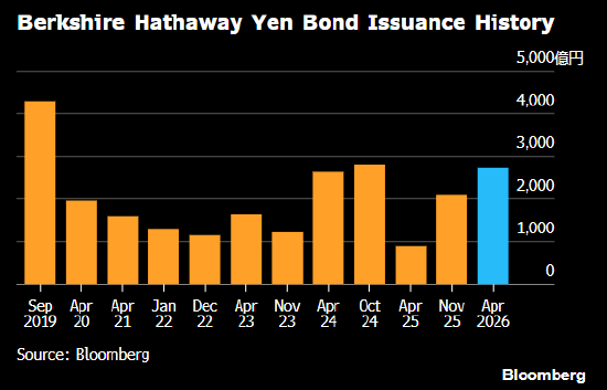 此次发行的六期债券期限从3年到30年不等。10年期债券的定价较基准高出90个基点,票面利率为3.084%。伯克希尔上次发行日元债券是在2025年11月,10年期债券的票面利率为2.422%。