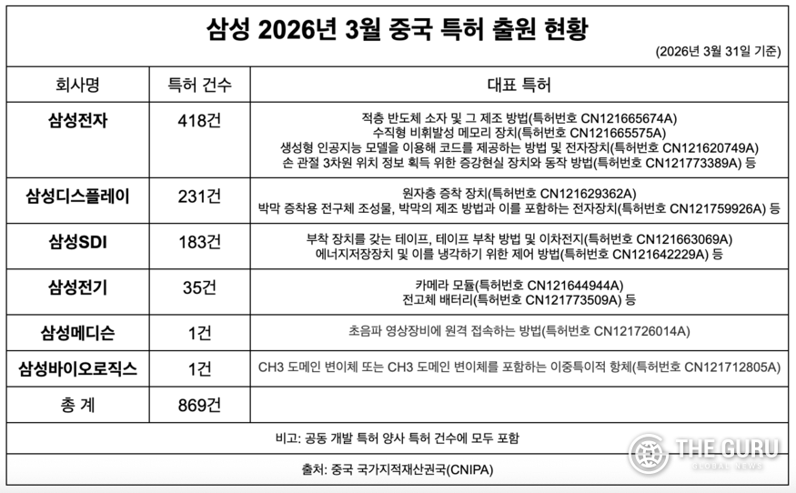 按子公司划分,三星电子 3 月以 418 项授权位居首位,三星显示、三星 SDI 和三星电机分别获得 231 项、183 项和 35 项。这一分布显示三星集团在电子、显示及电池领域的全方位技术投入。