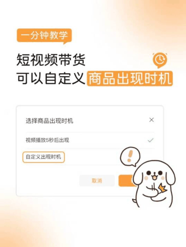 视频号助手 PC 端增加“自定义商品出现时机”功能,在发布商品分享视频时,创作者可以选择自定义商品出现时机,可以伴随作者的口播或者植入时机出现。