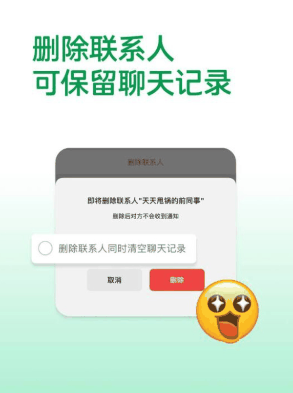 微信更新好友管理功能,用户可自主选择是否“删除联系人同时清空聊天记录”,未勾选状态下聊天记录将完整保留,重新添加好友后即可恢复历史对话。
