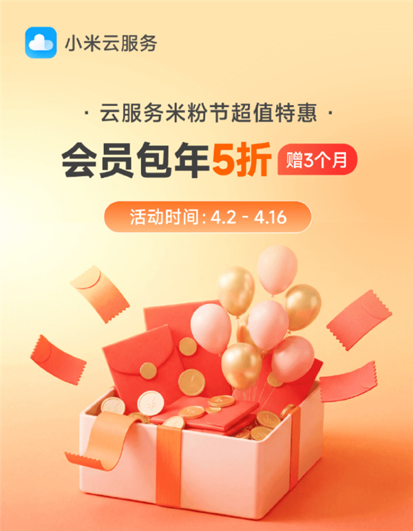 今年活动中, 小米云服务会员推出包年5折优惠,并额外赠送3个月时长,活动将持续至4月16日。