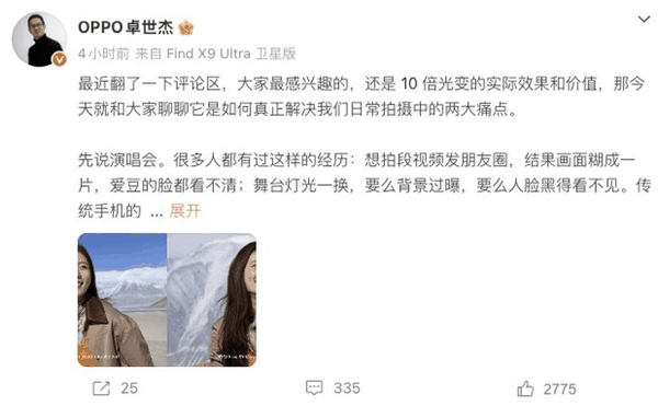 今日,OPPO Find系列产品负责人卓世杰发文,详细解读了这颗10倍光变长焦镜头的核心优势,重点针对用户日常拍摄中的两大核心痛点,给出了针对性解决方案。卓世杰表示,手机长焦的进化,核心是从“拍得到”向“拍得好、拍得轻松”升级,而这颗哈苏10倍光变长焦,正是以光学实力破解行业痛点的关键。