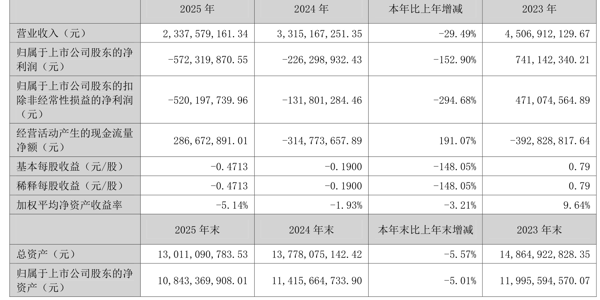 数据显示,2025年公司加权平均净资产收益率为-5.14%,较上年同期下降3.21个百分点。公司2025年投入资本回报率为-5.83%,较上年同期下降2.61个百分点。