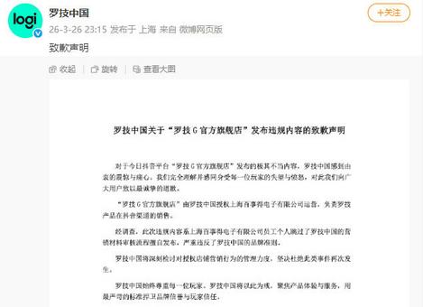 推广视频涉嫌侮辱消费者 罗技中国发布致歉声明