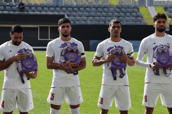 伊朗男足赛前手捧书包 悼念空袭遇难学生