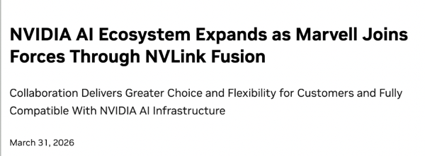 NVIDIA( 英伟达 )和Marvell宣布建立战略合作伙伴关系,通过NVIDIA NVLink Fusion将Marvell连接到NVIDIA AI Factory和AI-RAN生态系统,为基于NVIDIA架构的客户在开发下一代基础设施时提供更大的选择和灵活性。Marvell将提供定制的XPU和与NVLink Fusion兼容的纵向扩展网络,而NVIDIA将提供支持技术,包括Vera CPU、ConnectX网卡、Bluefield DPU、NVLink互连和Spectrum-X交换机,以及机架级AI计算能力。此外,英伟达还向Marvell投资了20亿美元。两家公司还将合作,利用NVIDIA Aerial AI-RAN for 5G/6G将全球电信网络转变为AI基础设施,并推进世界一流的AI网络,包括先进的光互连解决方案和硅光子技术。