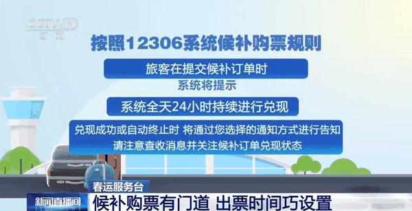 据央视新闻消息,近日有网友反映,春运返程候补购票,凌晨3点才收到候补成功通知,因熟睡未及时查看,醒来时列车已发车,车票无法全额退款。国铁集团有关负责人解释,目前候补购票可以24小时兑现,但旅客填写候补订单时需注意设置兑现时间。