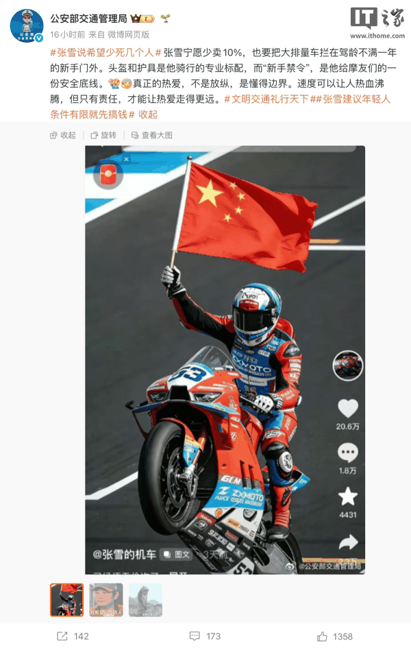 公安部发文力挺张雪“禁止新手买820 RR摩托车”:真正的热爱是懂得边界