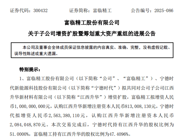 与此同时,12月26日,宁德时代拟增资 25.63亿元 控股江西升华(持股51%),这又是是其 材料端垂直整合的关键一步 。