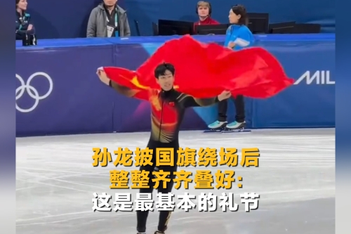 孙龙披国旗绕场后整整齐齐叠好:这是最基本的礼节