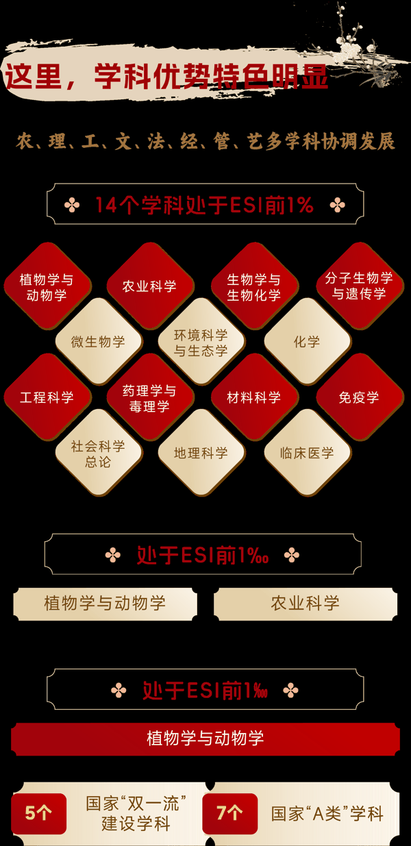 华中农业大学创办于1898年。在128年办学历史中,历代华农人秉持“宏农学、扬国光”的价值追求,践行以“勤读力耕、立己达人”为核心的华农精神,走出了一条特色发展之路,建成了特色鲜明的研究型大学,跻身国家“双一流”建设高校。