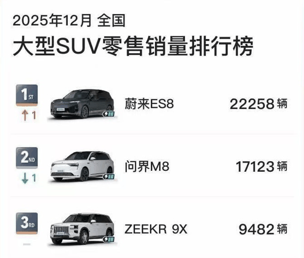 前两天,易车公布的 2025 年 12 月大型 SUV 零售销量排行榜里,出现了一个让不少人感到惊讶的数字——