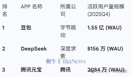 作为腾讯面向C端的AI应用,元宝的用户基数与微信不可同日而语。QuestMobile数据显示,截至2025年12月,元宝周活跃用户仅2084万,远落后于豆包的1.55亿。对普通用户而言,元宝仍属于“小众尝鲜品”。