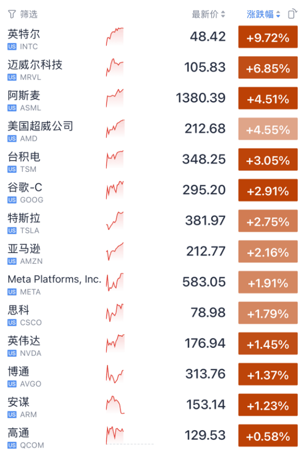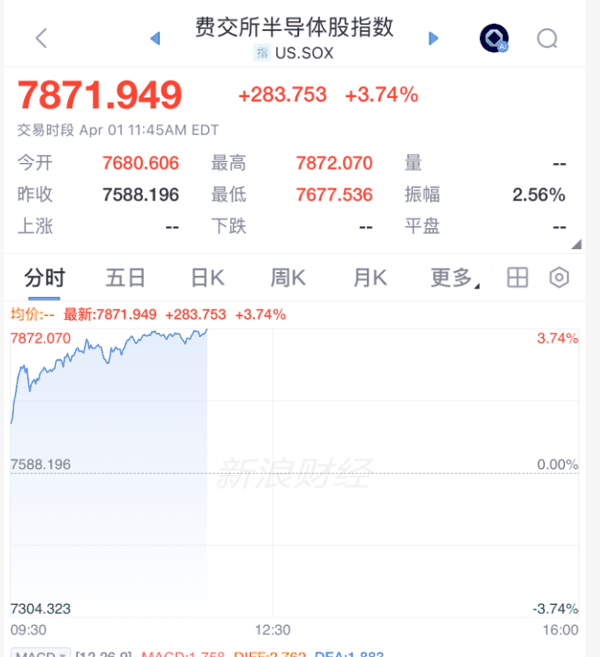 芯片股延续反弹,费城 半导体 指数暴涨近4%。