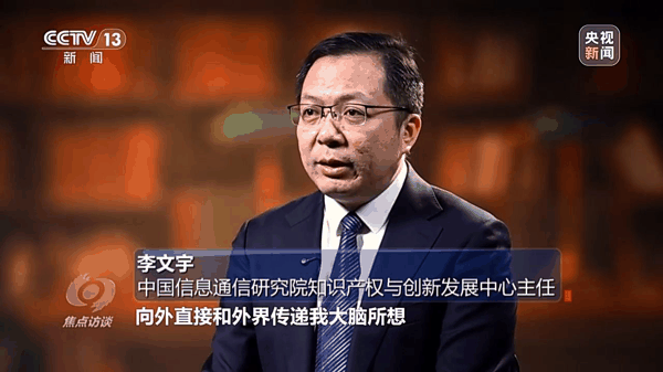 中国信息通信研究院知识产权与创新发展中心主任 李文宇: 我可以不借助我的手,也不借助我的眼睛和嘴巴,向外直接和外界传递大脑所想,也就是人的意识。比如使用了脑机接口之后,可以把我对这个车辆的控制信息直接传递到车辆上,车辆可以根据大脑意识,控制一些运动的行为,向前、向后、左转、右转,还有其他一些设备,这样能够实现意念直接控制;另外一方面,脑机接口也可以用来进行神经调节,治疗人类的一些神经疾病。