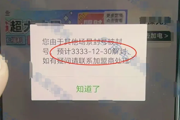 一位四川的网约车司机展示APP截图显示, 他的账号直接被封禁近8000年,预计9999-12-29解封,刷新网约车行业封号最长的纪录。