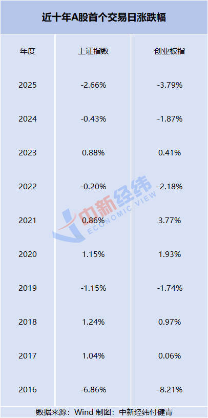 今日,A股迎来2026年首个交易日。中新经纬梳理发现,近10年A股全年首个交易日上证指数、创业板指均呈现“五涨五跌”,A股能否在2026年迎来开门红?
