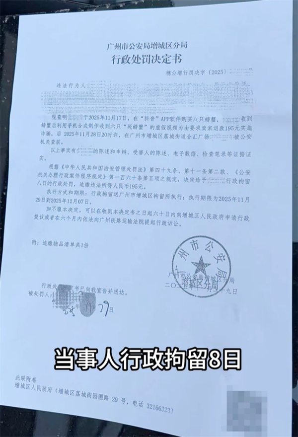 此后,卖家不间断更新事件进展,而在今日,她同步了最终结果: 买家实际上是一名男子,目前已被广州增城区警方行政拘留8日,追缴违法所得人民币195元 。
