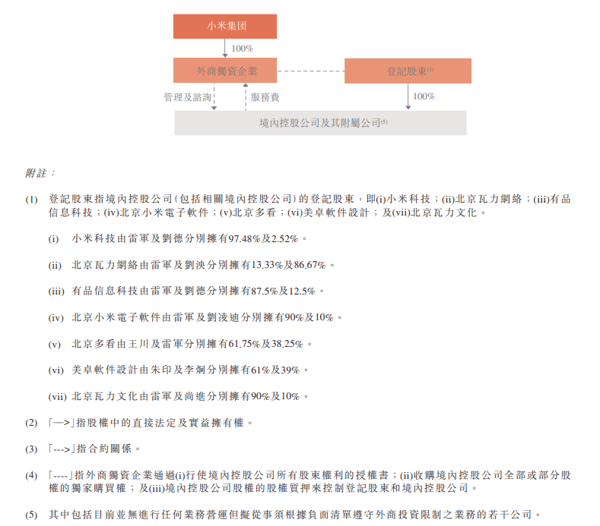公告显示,小米集团通过外商独资企业与合并联属实体(包括但不限于小米科技、北京瓦力网络、北京小米电子软件及有品信息科技)以及登记股东订立的合约安排,来获取对合并联属实体的有效控制权及享有其产生的全部经济利益。