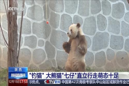 大熊猫“七仔”直立行走萌态十足