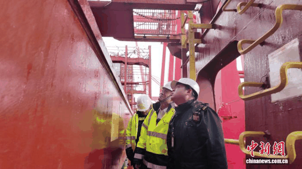 据悉,该轮船长328米,载重吨超11.7万吨,计划在港区停靠15小时,完成约2000个自然箱的装卸作业。