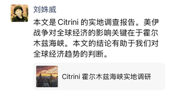 4月6日,总部位于纽约的独立主题投资研究机构Citrini Research抛出一份研究报告——“Citrini远征队 3号分析师霍尔木兹海峡调研报告”,迅速火遍财经圈。原因是,当国际油价、全球股市因中东冲突引发的霍尔木兹海峡危机剧烈震荡时,Citrini的这位“3号分析师”直接去霍尔木兹海峡做了一次草根调研。
