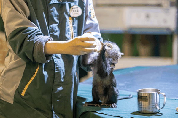 “‘嫦嫦’因出生后母亲未能亲自哺育,且腿部稍有受伤,便被送至动物幼儿园接受专业照料。目前,狮尾猴‘嫦嫦’仍以吃奶为主,预计在6-7个月后逐步断奶,转为摄入水果等辅食。”广州长隆保育员罗盛辉表示:待其断奶后,将逐步尝试让它与族群中年龄相近的狮尾猴共同生活,帮助它慢慢融入大家庭。