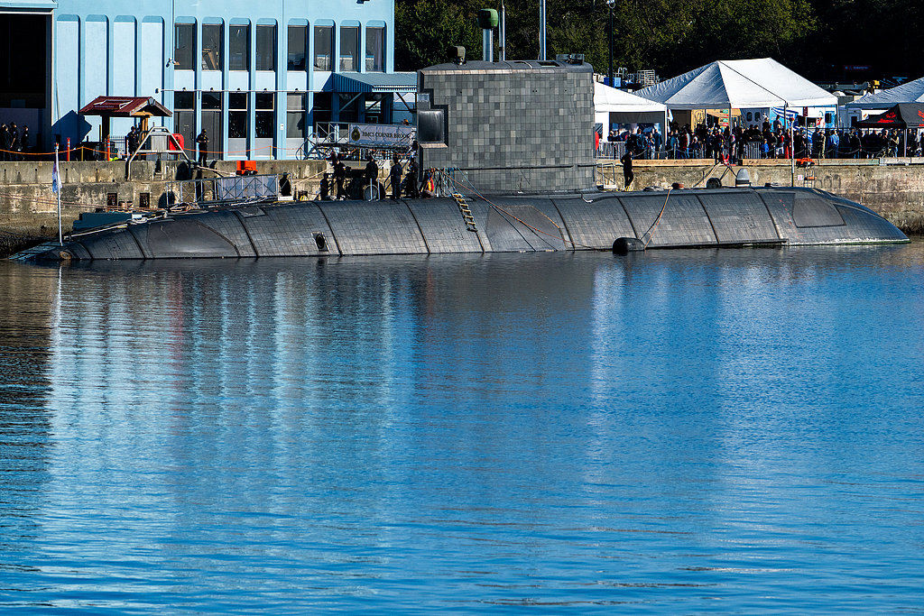 当地时间2025年10月5日,加拿大不列颠哥伦比亚省维多利亚,加拿大海军四艘远程攻击型潜艇之一“科纳布鲁克”号潜艇(HMCS Corner Brook)的船员在“码头防务”活动上。图/视觉中国