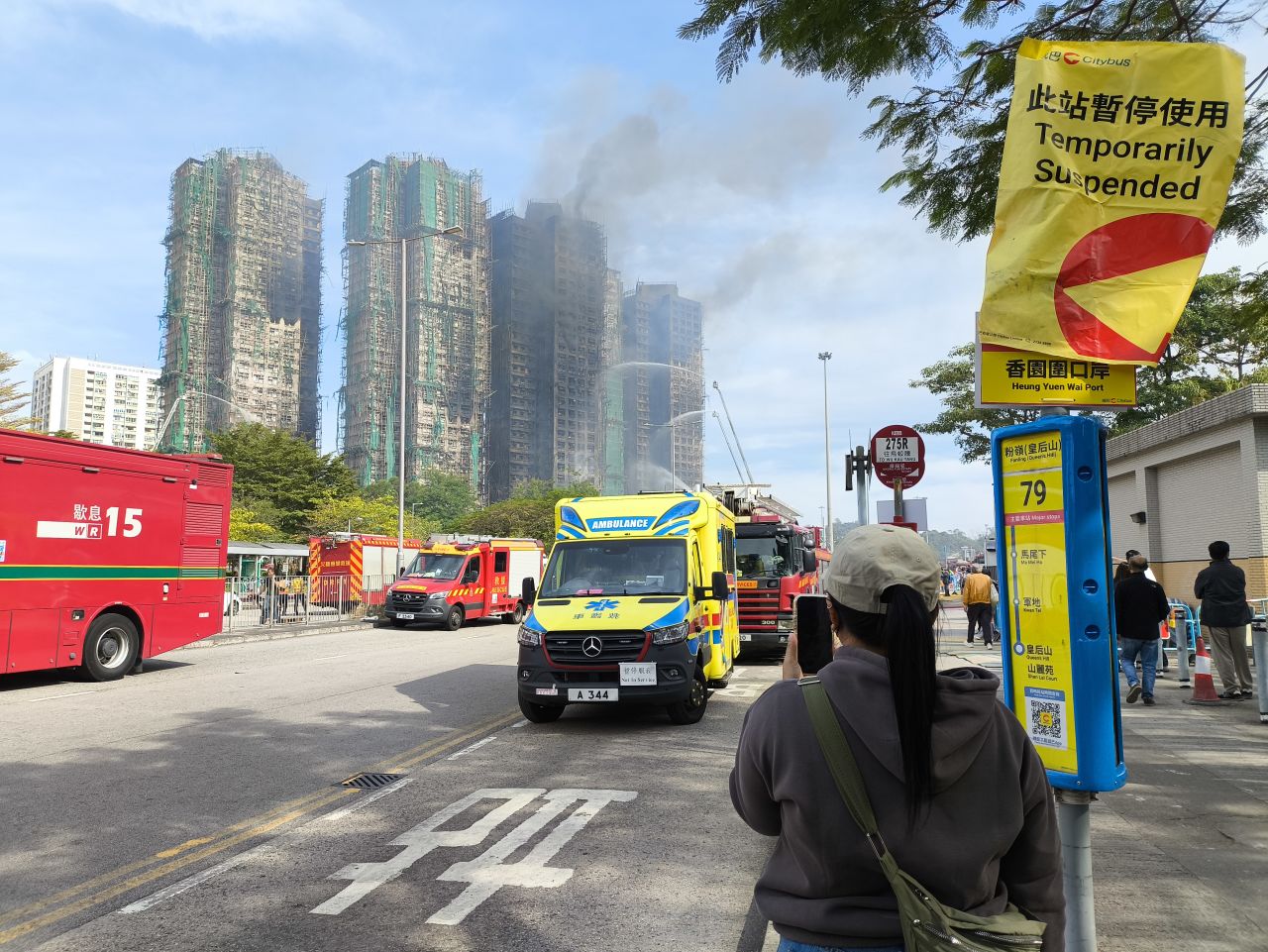 11月27日,香港大埔宏福苑附近,公交站台已经停运。图/毛淑杰