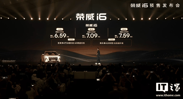 IT之家 4 月 13 日消息,上汽全新荣威 i6 汽车已于今晚预售发布,新车采用品牌最新设计语言,配备 15.6 英寸 2.5K 中控大屏,并搭载高通骁龙 8155 芯片, 限时抢订价 6.59 万元起 。
