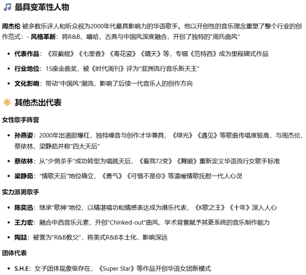 举个例子,我们可以开启「深度思考」模式,然后让模型 选出 2000 年代最优秀的华语流行歌手 。